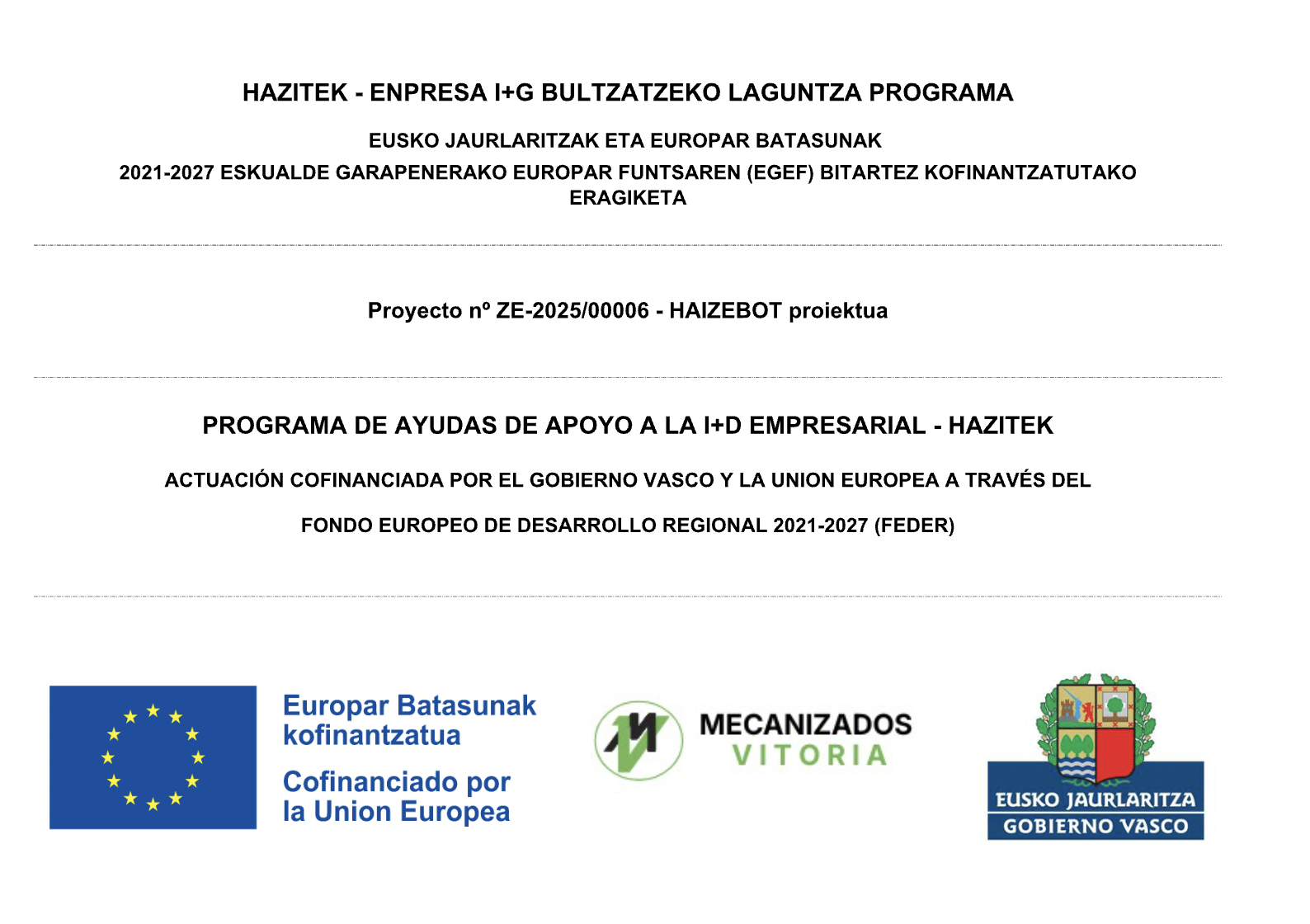 El objetivo principal del Proyecto HAIZEBOT (Investigación en nuevas Soluciones Basadas en IA, Sistemas de Percepción y Mecatrónica para la Optimización de Células Robóticas de Montaje de Aeroestructuras) consiste en investigar en tecnologías habilitadoras para que las empresas de montaje de estructuras aeronáuticas y su cadena de suministro puedan ofrecer productos más rentables a través de incrementar la eficiencia de las líneas de montaje mediante: reducción de plazos de entrega, reducción de componentes defectuosos, incremento de calidad, reducción de consumo de recursos y en definitiva reducción de costes de fabricación de producto para incrementar su competitividad en un mercado cada vez más globalizado.
